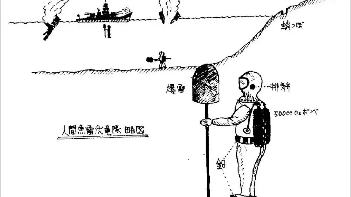 Никто из матросов эсминца не знал, что это был «фукурю» - «крадущийся дракон» по-японски, боевой пловец-смертник, а в ящике у него находилось 15 килограмм тротила. Задачей «фукурю» был подрыв десантных кораблей противника при подходе к берегу. Обычно это происходило под водой, и снаряжение пловца-камикадзе состояло из дыхательного аппарата, двух баллонов со сжатым кислородом общей емкостью в 7 литров и водонепроницаемого костюма с 9-килограммовым свинцовым поясом. Такой пловец мог погружаться на глубину до 60 метров, передвигаться со скоростью в 2 км/ч и проводить под водой до 8 часов. Японцы собирались подготовить 6 тысяч таких подводных смертников, но успели принять на службу 1200 человек. Самому младшему из них было 15 лет, самым старшим – более 50-ти. 8 января 1945 года на острове Палау «фукурю» удалось серьезно повредить американский десантный корабль.