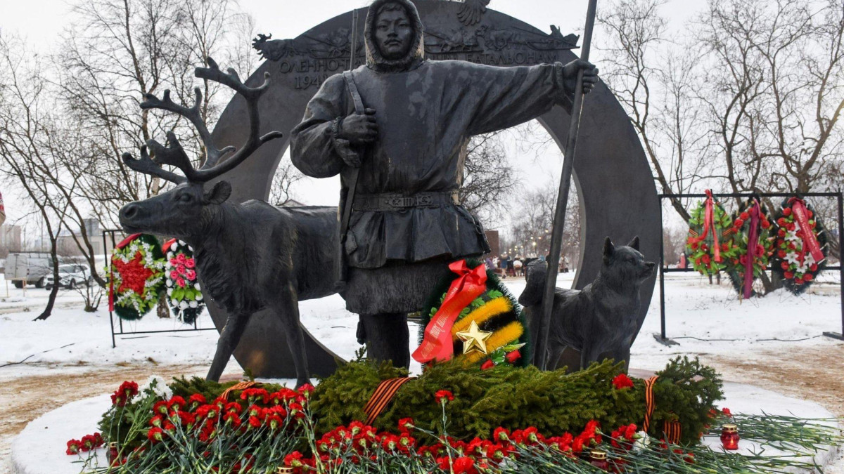 «Представляете себе, как с горы со скоростью мотоциклиста спускается человек в островерхой шапке и меховой малице. Он проносится мимо вас, на мгновение повернув к вам скуластое лицо… Это погонщик оленей, ненец, который пришёл со своими оленями за 3.000 км из Большеземельской тундры, чтобы воевать с немцами», - записал в военном дневнике известный писатель Евгений Петров.