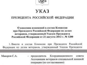 Сергей Макаров вошел в состав Комиссии по делам ветеранов при Президенте России