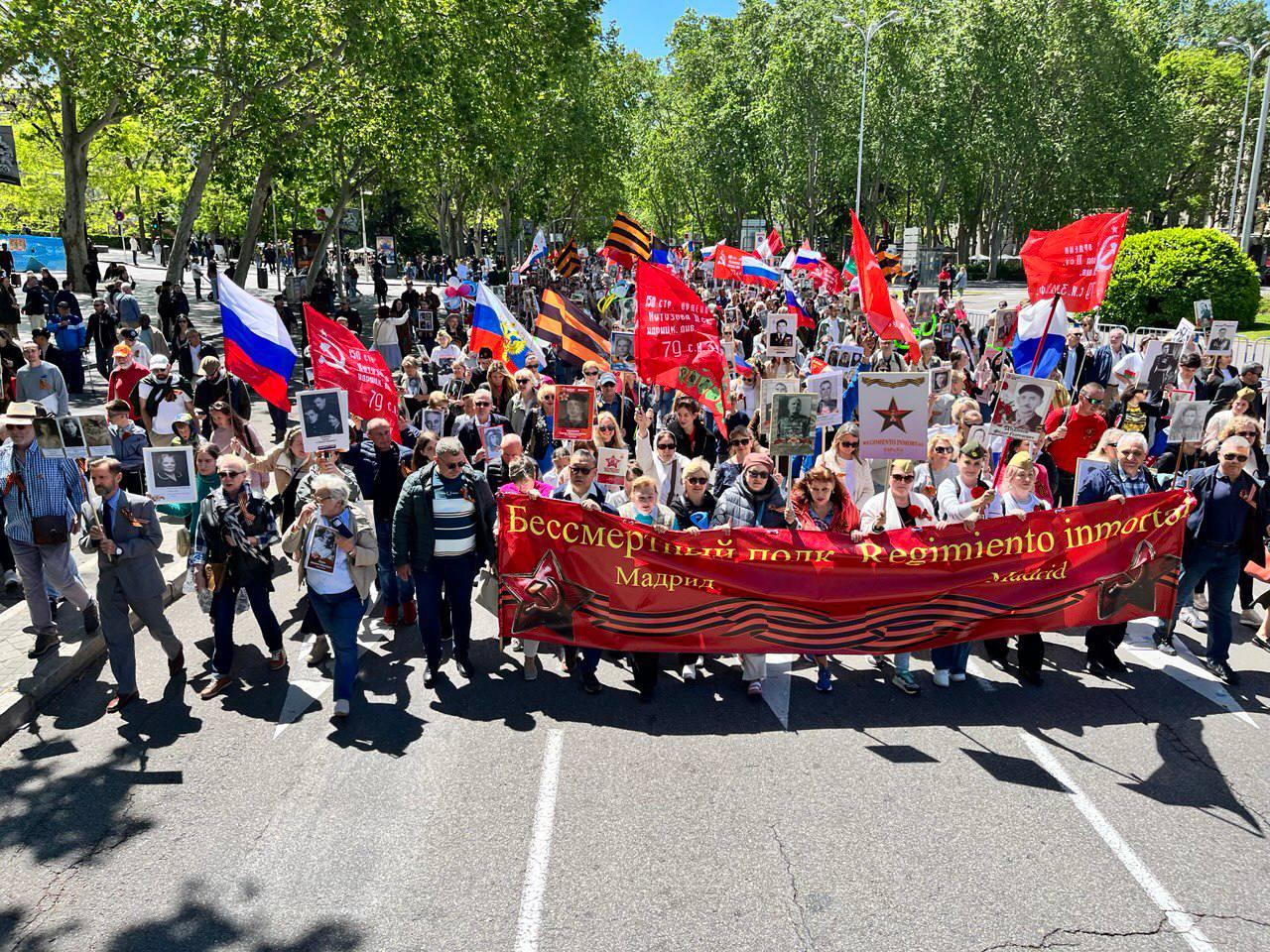 Вообще, в этом году многие страны обновили рекорды по участникам шествия Бессмертного полка В Вене шествие более полутора тысяч участников - втрое больше, чем год назад, в Мадриде - рекордные 3 тысячи человек, ну а в столице Казахстана, где шествие разрешили впервые за 2 года, улицы Алма-Аты заполнили 30 тысяч потомков Победителей нацизма. Завершился праздничный вечер масштабным светом шоу, которые создали полтысячи дронов, образуя в небе светящиеся картины памяти.
