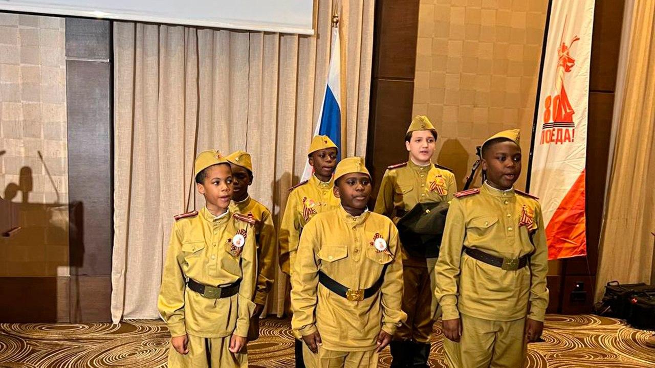 Учащиеся одной из школ в Мали исполнили песни времен Великой Отечественной войны в честь 80-летия Победы, а городе Малабо – столице Экваториальной Гвинее на берегу океана была установлена Стена памяти, куда каждый желающий мог прикрепить фотографию героя своей семьи.