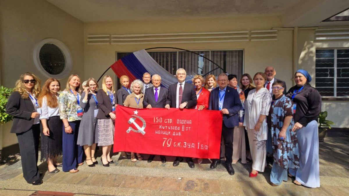 Международные координаторы разворачивают копии Знамени Победы. Полотна, созданные вручную, переданы координаторам на форуме «Память Победителей. 80 лет Победы в Великой Отечественной войне в 1941–1945 гг.» в Москве. Копии Знамени Победы вручала Ирина Дорожкина, дочь Героя Советского Союза Михаила Егорова, водрузившего вместе с Мелитоном Кантария штурмовой флаг 150-й ордена Кутузова II степени Идрицкой стрелковой дивизии над рейхстагом в Берлине. Легендарный флаг уже развернули в Азербайджане, Бельгии, Болгарии, Индии, Конго, Южной Корее, Малайзии, Словении, Турции, Узбекистане, Швеции и на Кипре. В Эфиопии полотно передали в Русский дом в Аддис-Абебе, знаменитый штурмовой флаг могут увидеть соотечественники, выпускники советских и российских вузов, а также жители эфиопской столицы. Уже скоро вместе с этими полотнами наши соотечественники, потомки Победителей и все, кто поддерживают наши ценности, выйдут на улицы городов в праздничном шествии по всему миру.