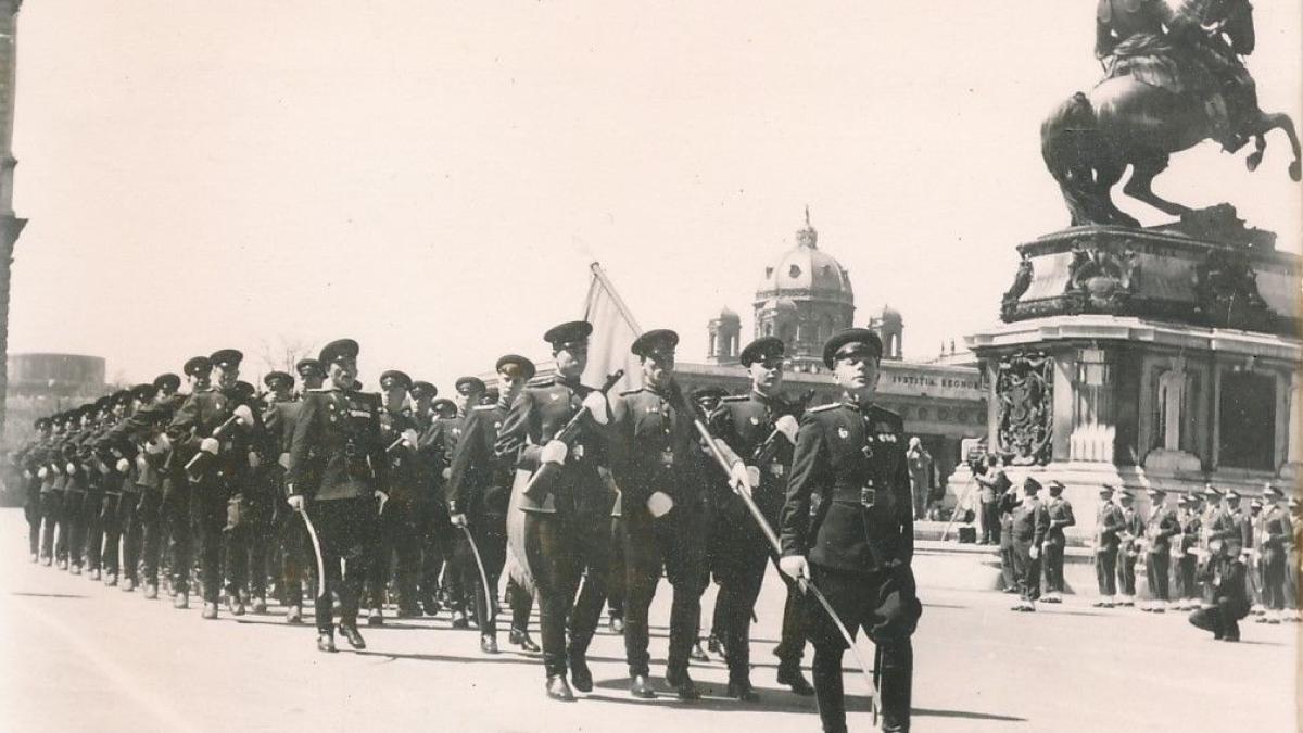 13 апреля 1946 года в столице Австрии в честь первой годовщины освобождения города состоялся парад войск союзников по антигитлеровской коалиции. Командовал парадом командир 13-й Гвардейской стрелковой дивизией, отличившейся в Сталинградской битве, Герой Советского Союза генерал-майор Владимир Комаров. Принимали парад маршал Советского Союза Иван Конев, генерал американской армии Марк Уэйн Кларк, британский полковник Гордон Смит и генерал французской армии Мари-Эмиль Бетуар.