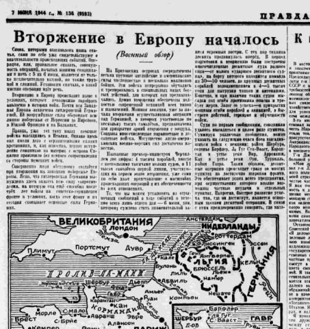 Не стоит думать, что внезапность высадки и полное господство в воздухе - только за январь-март 1944 года англо-американская авиация уничтожила более 5 тысяч немецких самолетов – сделало высадку легкой прогулкой. К исходу 24 июля, когда союзникам удалось захватить плацдарм в 100 километров по фронту и до 50 километров в глубину, их войска потеряли 122 тысячи человек, 2395 танков, 65 надводных кораблей и судов, 1508 самолетов. Около 800 судов были выброшены на берег и повреждены. Немецкие потери были несколько меньше – 113 тысяч убитых, раненых и пленных, 2117 танков, 57 надводных кораблей и боевых катеров, 913 самолетов. Однако к тому времени на севере Франции была уже сосредоточена почти полуторамиллионная армия, остановить которую немцам удалось лишь на пару недель в Арденнах в декабре. Правда, сосредочить в июне-июле 1944 года такую армию союзникам удалось во многом благодаря тому, что 23 июня началась крупнейшая в истории войн советская стратегическая операция «Багратион» - наступление по всему советско-германскому фронту. Не слишком веря в успех англо-американской высадки и помня о разгроме англо-канадского десанта под бельгийским Дьеппом в августе 1942 года, советские газеты даже пару месяцев не называли высадку союзников в Нормандии «вторым фронтом».