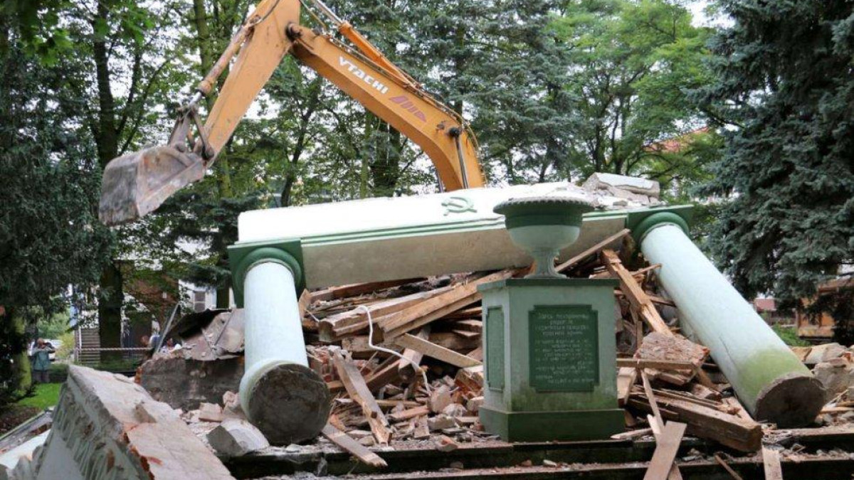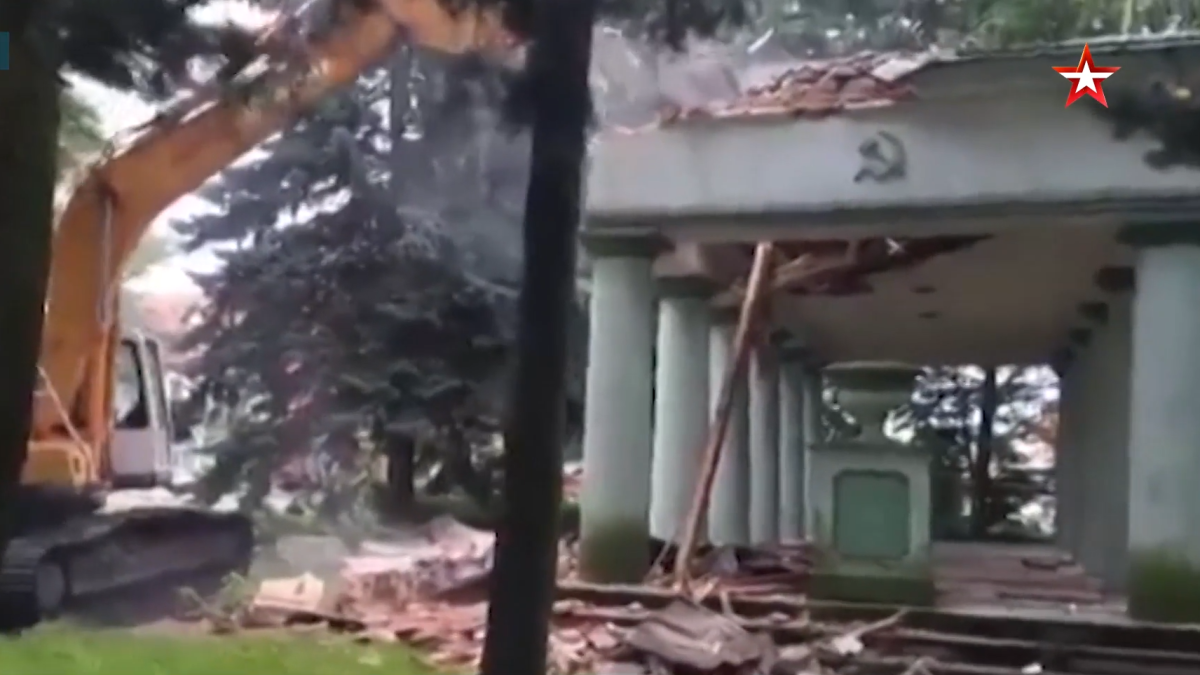 На фото: варварский снос памятника советским воинам в Тшчанке (Польша)
