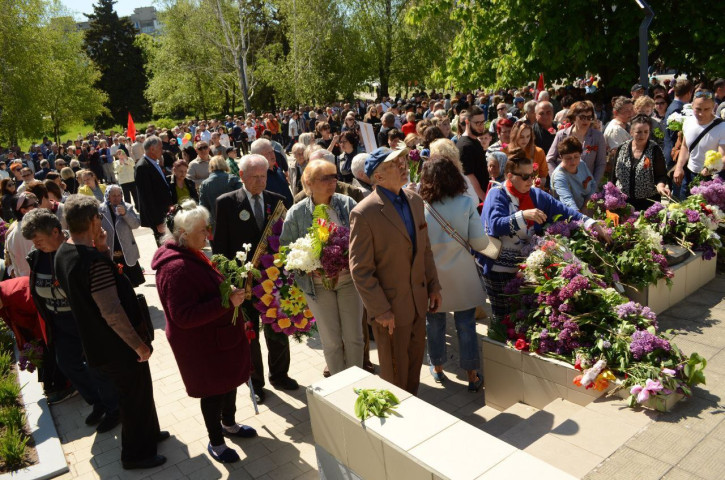 Несмотря на тревожную обстановку, жители городов восточной Украины также встали в строй Бессмертного полка. Впервые за 7 последних лет шествие Бессмертного полка состоялось в Мелитополе – в нем приняло участие около 10 тысяч человек. Участники прошли по центральной улице города и возложили цветы к Вечному огню, недавно вновь зажженному у мемориала павшим воинам Великой Отечественной войны.