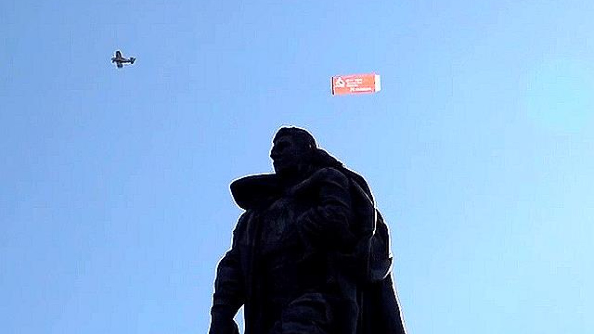 В Германии на символе Берлина Бранденбургских воротах утром появилось слово «спасибо» на русском языке, а днем сотни человек, собравшиеся в Трептов-парке у памятника Воину-Освободителю могли увидеть в небе копию знамени 150-й Идрицкой стрелковой дивизии, 30 апреля 1945 года водруженного над тогдашним символом Германии рейхстаге. Знаменем Победителей также приветствовали героев войны активисты Бессмертного полка Италии в Риме.
