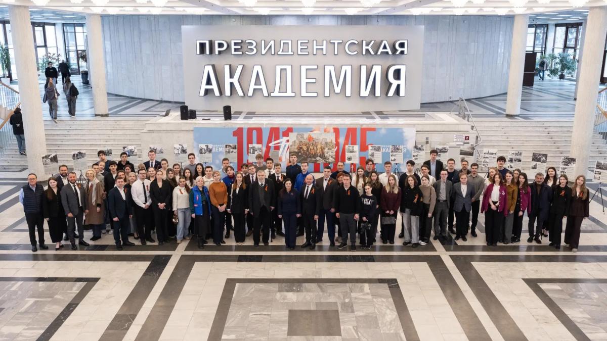 Затем участники переместились на территорию Президентской академии, где состоялось открытие выставки. В мероприятии приняли участие студенты и активисты общественных организаций.