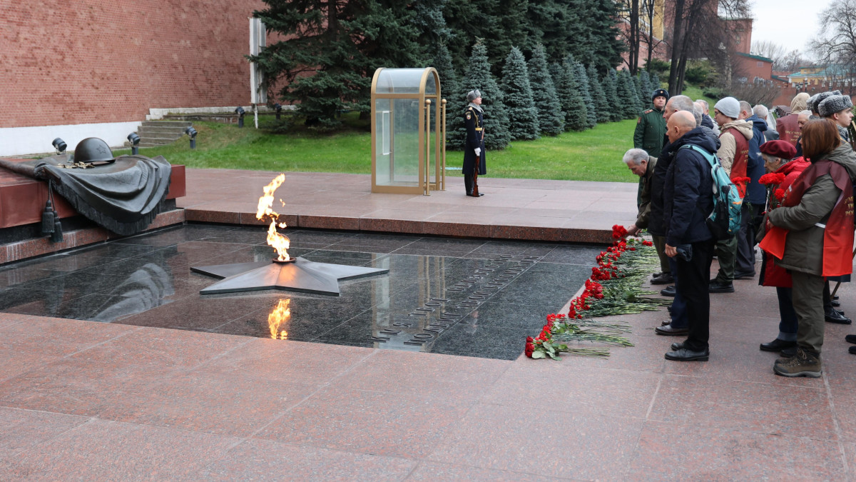 Венок и живые цветы к Вечному огню на Могиле Неизвестного Солдата у Кремлевской стены вместе с однополчанами возложил Президент Академии Нюрнбергских принципов, заместитель директора Института государства и права Российской академии наук (ИГП РАН), писатель и историк Александр Звягинцев: «Наши солдаты освободили не только нашу Родину, но и весь мир от коричневой чумы, за освобождение Европы наши предки заплатили миллионами жизней. Забыть об этом, память отрубив? Да где же нашему народу найти такой топор, который память в раз отрубит! Поэтому мы, наследники Победителей, помним и напоминаем всему миру, что жизнью наших неизвестных солдат, их кровью был остановлен нацизм».
