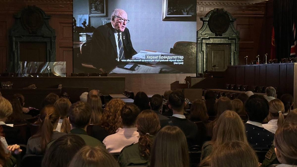 Затем участники мероприятия познакомились с документальным фильмом «Вторая мировая. Ложь западных стран», созданным Бессмертным полком России при поддержке Фонда президентских грантов. Фильм представил факты из архивных документов и мнения историков и других экспертов из разных стран о значении противостояния нацизму в ходе Великой Отечественной войны и вкладе Советского Союза в победу над нацизмом.