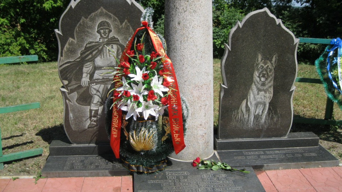 «Остановись и поклонись. Тут в июле 1941 года поднялись в последнюю атаку на врага бойцы отдельной Коломыйской пограничной комендатуры, - такая надпись на этом памятнике в селе Легедзино Черкасской области. - 500 пограничников и 150 их служебных собак полегли смертью храбрых в том бою. Они остались навсегда верными присяге, родной земле». Единственная за всю историю мировых войн битва людей и собак случилась 80 лет назад, в июле 1941 года.