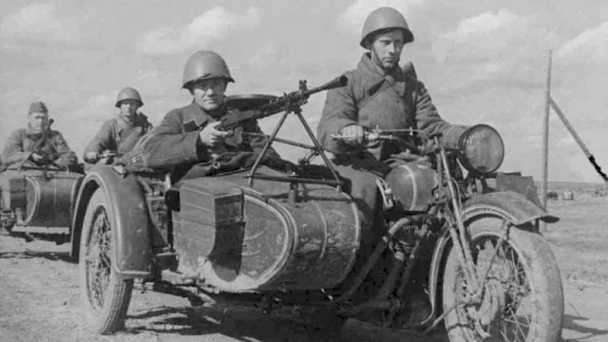В книге «Мотоцикл в армии», выпущенной Наркоматом обороны в 1936 году, сказано, что «мотоциклетные части имеют преимущества перед конницей, поскольку он весьма поворотлив, мал, его легко маскировать и хранить, хотя конница и обладает большей гибкостью маневрирования. Правда, первые мотоциклетные части в Красной Армии появились лишь в феврале 1940 года. Причина была проста – отсутствие мотоциклов. За весь 1940 год в стране было выпущено лишь две с половиной тысячи мотоциклов, и, к примеру, 2-й мотоциклетный полк 8-го механизированного корпуса к июлю 1941 года вообще не имел мотоциклов. При этом в вермахте имелось почти 90 тысяч мотоциклов, из них на советской границе было сосредоточено 30 тысяч этих «боевых машин». Тем не менее, на основе немецкого БМВ советские заводы смогли наладить выпуск отечественного мотоцикла М-72, за годы Великой Отечественной войны произведя почти 14 тысяч таких машин. Существенную помощь оказали и американские «Харлей Дэвидсоны» и «Индианы», английские «Велосет» и «Матчлесс, присланные по ленд-лизу. Таких было более 30 тысяч штук. Мотоциклы официально относились к бронетехнике - трехколесные машины оборудовались под станковый пулемет, на руле мог крепиться ППШ, а на коляске - противотанковое ружье и даже мощный огнемет. А когда оружия недоставало, выручала смекалка. Так, 15 декабря 1941 года у деревни Першутино Клинского района Московской области бойцы 46-го отдельного мотоциклетного полка смогли остановить колонну из 26-ти немецких танков. Выскакивая на высокой скорости из леса, мотоциклы с красноармейцем, привязанным к коляске спиной к водителю, забрасывали вражеские машины гранатами. Шоссе Клин-Волоколамск оказалось заблокировано сожженными немецкими танками, и мотоциклисты смогли дождаться подкрепления, не дав врагу прорваться в Клин. Правда, и потери полка были огромны – 150 бойцов и 220-ти.