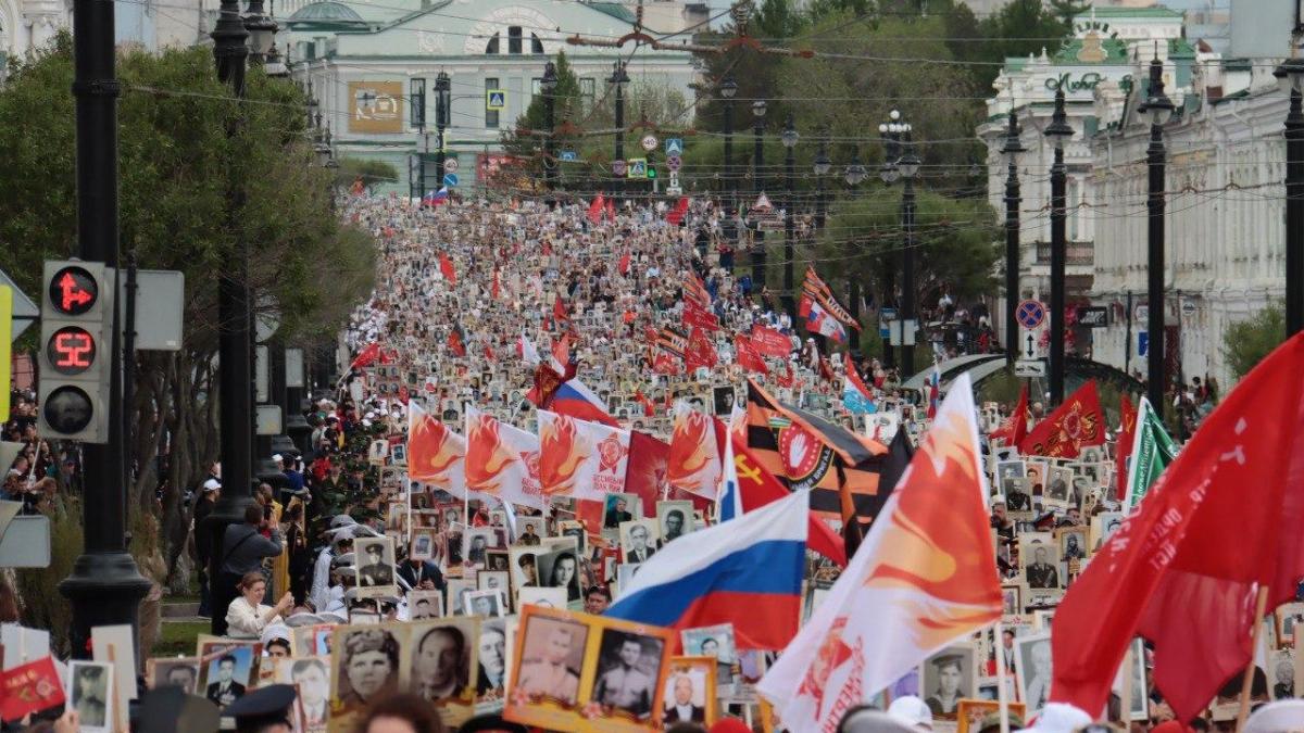 На шествие также вышли жители высокогорных селений Чеченской Республики и Дагестана, акция вернулась на улицы освобождённых Мелитополя и Мариуполя, многочисленные колонны прошли по Хабаровску и Якутску, сотни тысяч участников Бессмертный полк собрал в Ставрополе, Перми и Кемерово.