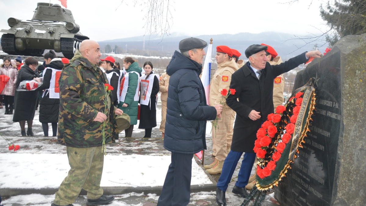 По инициативе руководителя исполкома регионального отделения Бессмертного полка России в Северной Осетии Азы Купеевой память воинов-интернационалистов почтили в городе Алагир. «Люди, которые оказались в Афганистане по приказу Родины, а это и 65 человек из моего родного Алагирского района Северной Осетии, стойко выполняли свой долг. Преклоняюсь перед их мужеством и храбростью, - рассказала Аза Купеева. - Вернувшись в мирную жизнь, многие из тех бойцов достигли профессиональных высот, являются достойным примером, на них равняется молодежь. Перед ребятами – живой пример мужества, героизма советских солдат, которые выполнили свой воинский долг, руководствуясь лучшими боевыми и патриотическими традициями воинов Великой Отечественной войны».