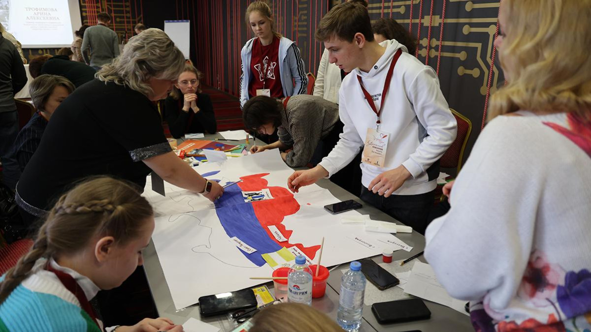 Помимо лекций для призеров конкурса «Пробуждая сердца» были организованы творческие мастерские. Так, участники, распределившись на группы, рисовали на ватманах пожелания со стихотворными строками для военнослужащих специальной военной операции - «Вместе Zа Правду!». Здесь и голуби мира, и георгиевская лента, и символичная буква Z. Все эти картины отправятся на передовую поддержать боевой дух военнослужащих СВО.