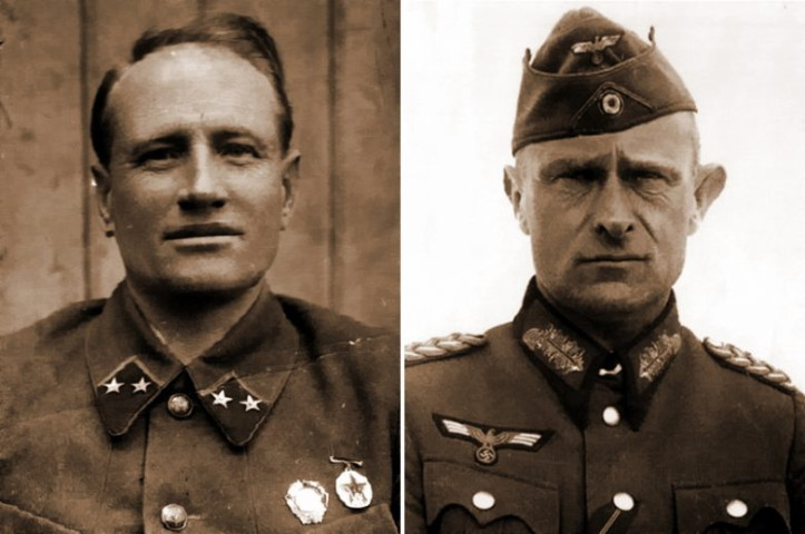 На фото: командир 15-й гвардейской стрелковой дивизии генерал-майор Емельян Иванович Василенко и командир 44-й пехотной дивизии генерал-лейтенант Генрих Антон Дебуа.
