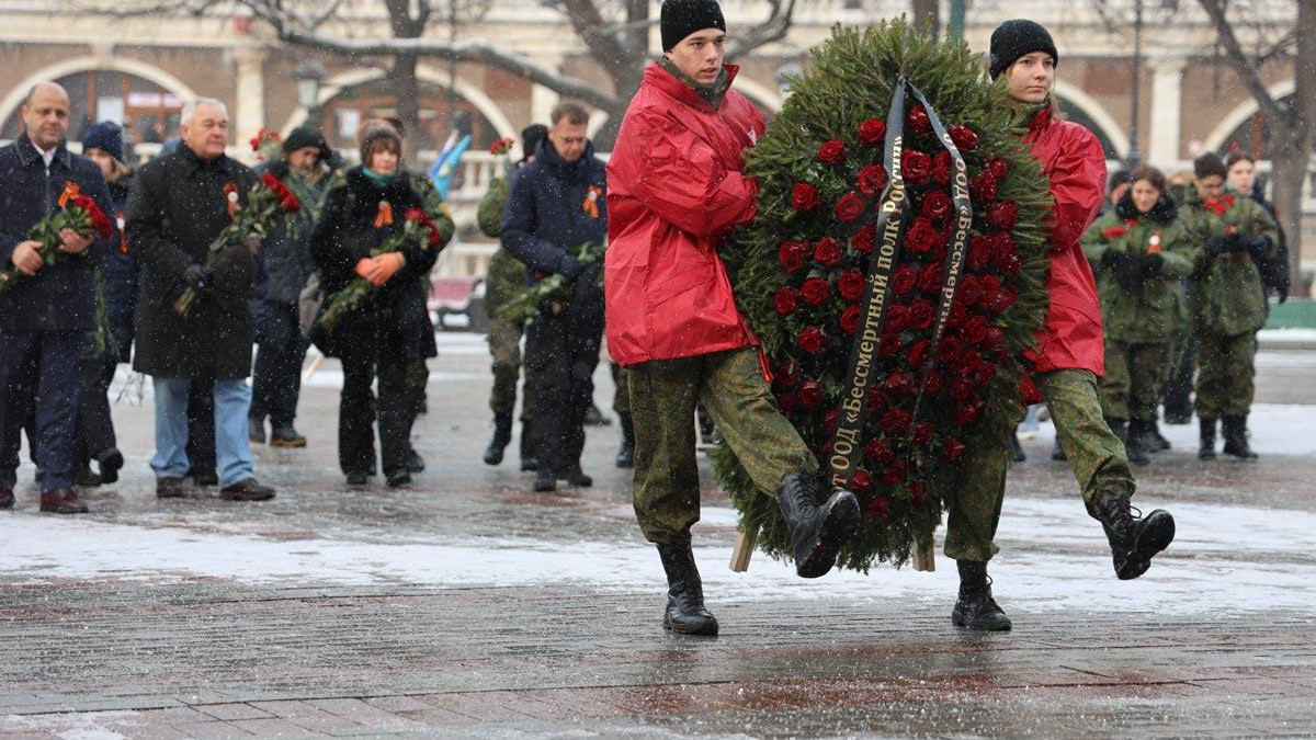 В самом сердце столицы, у Вечного огня на Могиле Неизвестного Солдата у Кремлевской стены активисты Бессмертного полка России, а также кадеты 8-й и 27-й школ г. Химки торжественно возложили венки и цветы в память о подвиге тех, кто не вернулся домой, защищая Отчизну. Историю этой памятной даты напомнил Сопредседатель Центрального штаба Бессмертного полка России, генерал-полковник в отставке, кавалер Ордена Святого Георгия IV степени Сергей Макаров: