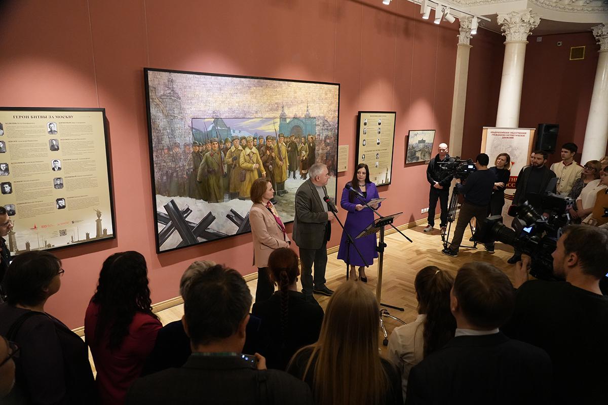 Презентация картины состоялась в Музее современной истории России. Художественное полотно и стенды с рассказами о героях удачно вписались в экспозицию выставки «На ближних подступах в Москве», посетить которую можно до конца января.