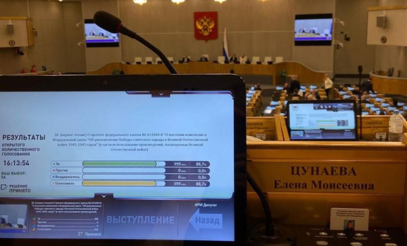 Государственная Дума Российской Федерации в первом чтении приняла законопроект, который касается использования произведений, посвященных Великой Отечественной войне. Законопроект предлагает создать общедоступный перечень музыкальных и не только произведений (с текстом или без), которые прославляют подвиг советского народа в Великой Отечественной войне, героизм, мужество, дружбу, единство, боевое братство защитников Отечества. Песни из этого перечня можно будет публично использовать без согласия правообладателей. Закон не нарушает права правообладателей: использовать произведения разрешено только в некоммерческих целях.