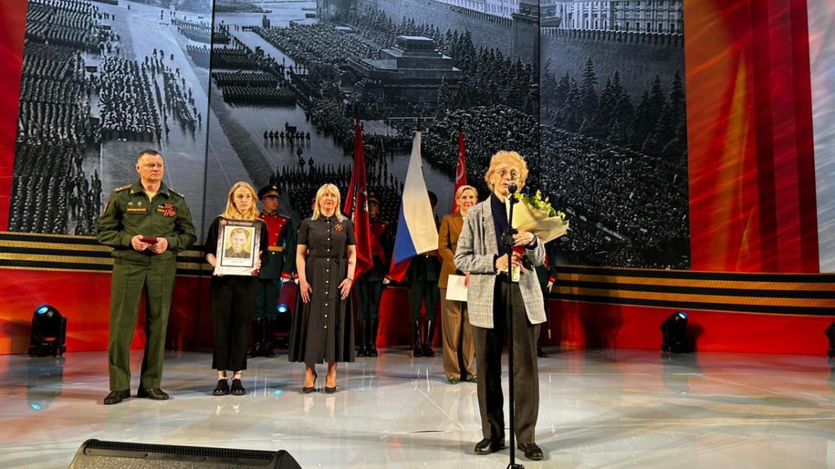 На праздничном концерте в честь Дня Великой Победы в конференц-зале Правительства Москвы родной племяннице погибшего в 1945 году красноармейца торжественно вручили удостоверение к медали «За боевые заслуги». На мероприятии лично поздравили родственницу бойца руководитель Исполкома Бессмертного полка России Наталья Шадрина и ведущий специалист отдела по работе с обращениями граждан Бессмертного полка России Жанна Жмур.