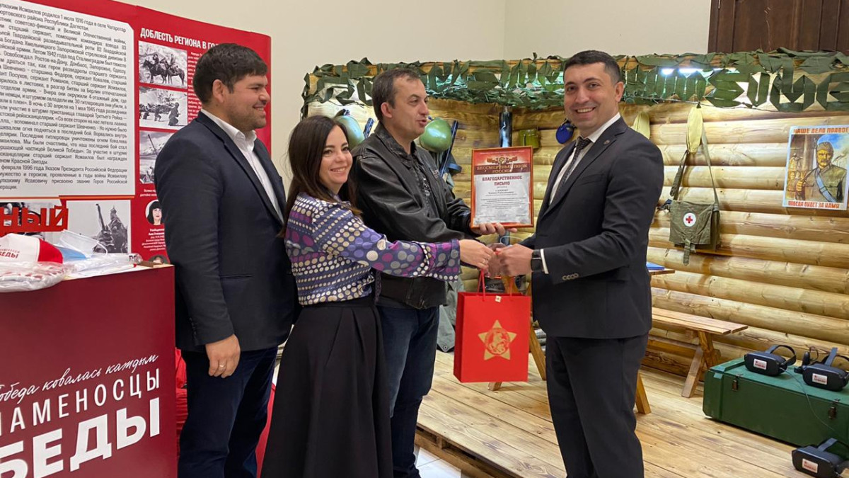 На площадку проекта «Знаменосцы Победы» пришли министр по делам молодежи РД Камил Саидов, руководитель Исполкома движения «Бессмертный полк России» Артем Хуторской, его первый заместитель Наталья Шадрина и другие. Они ознакомились с активностями на площадке, в том числе, с помощью VR-приложения увидели водружение Знамени Победы и смогли принять участие в этом процессе.