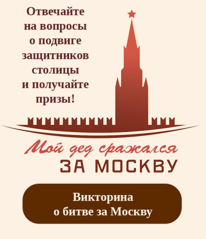Подвигу солдат и офицеров, а также тружеников тыла и памяти всех участников битвы за Москву посвящен проект Бессмертного полка России «Мой дед сражался за Москву». Сегодня стартовал его очередной этап – тематическая викторина, итоги которой будут подведены 26 ноября.