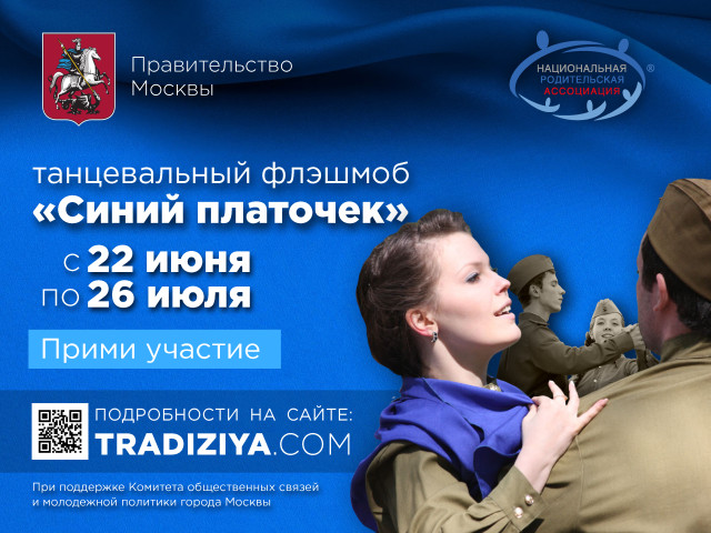 Национальная родительская ассоциация и Комитет общественных связей Москвы приглашают москвичей до 26 июля 2020 года принять участие в онлайн танцевальном флэшмобе «Синий платочек».