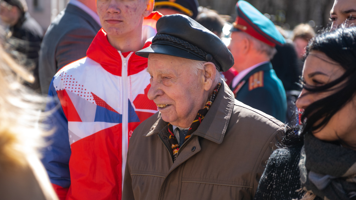 Мероприятие началось у Вечного огня с торжественного построения кадетов, возложения цветов и выступления ветерана Великой Отечественной войны Ивана Никитовича Кривошеева, которому недавно исполнился 101 год. Он участвовал в Сталинградской битве, освобождал Донбасс, Украину и Польшу, в том числе узников концлагеря Освенцим. В копилке ветерана много медалей, среди них - нагрудный знак «Освободителю Донбасса».