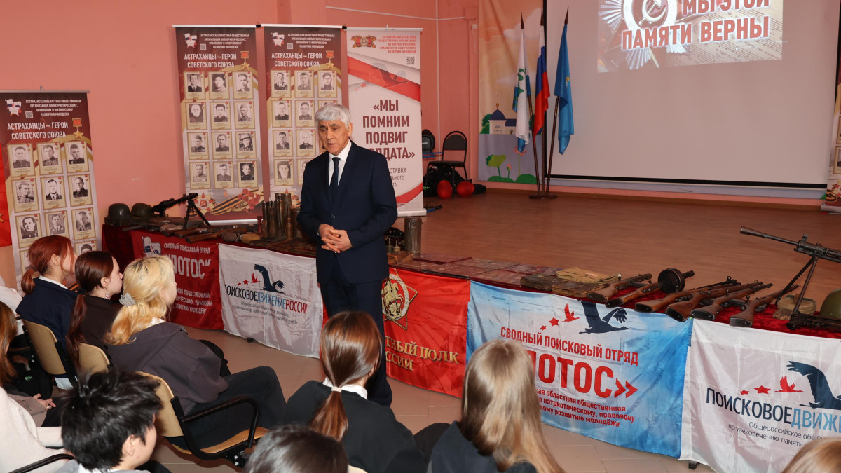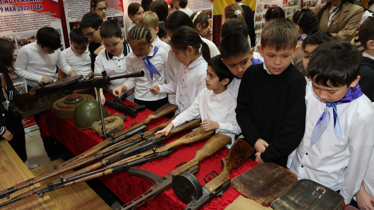 Уроки мужества «Мы помним подвиг солдата» и патриотические выставки в Астраханской области провели в Осыпнобугорской школе имени Героя России Азамата Бердиева. Руководитель штаба регионального отделения Бессмертного полка России Искандарбек Даиров стал рассказчиком о юных героях Великой Отечественной войны, а о современном герое рассказал Фаиль Бердиев – отец командира взвода 56-го гвардейского десантно-штурмового полка Азамата Бердиева, чье имя носит школа.