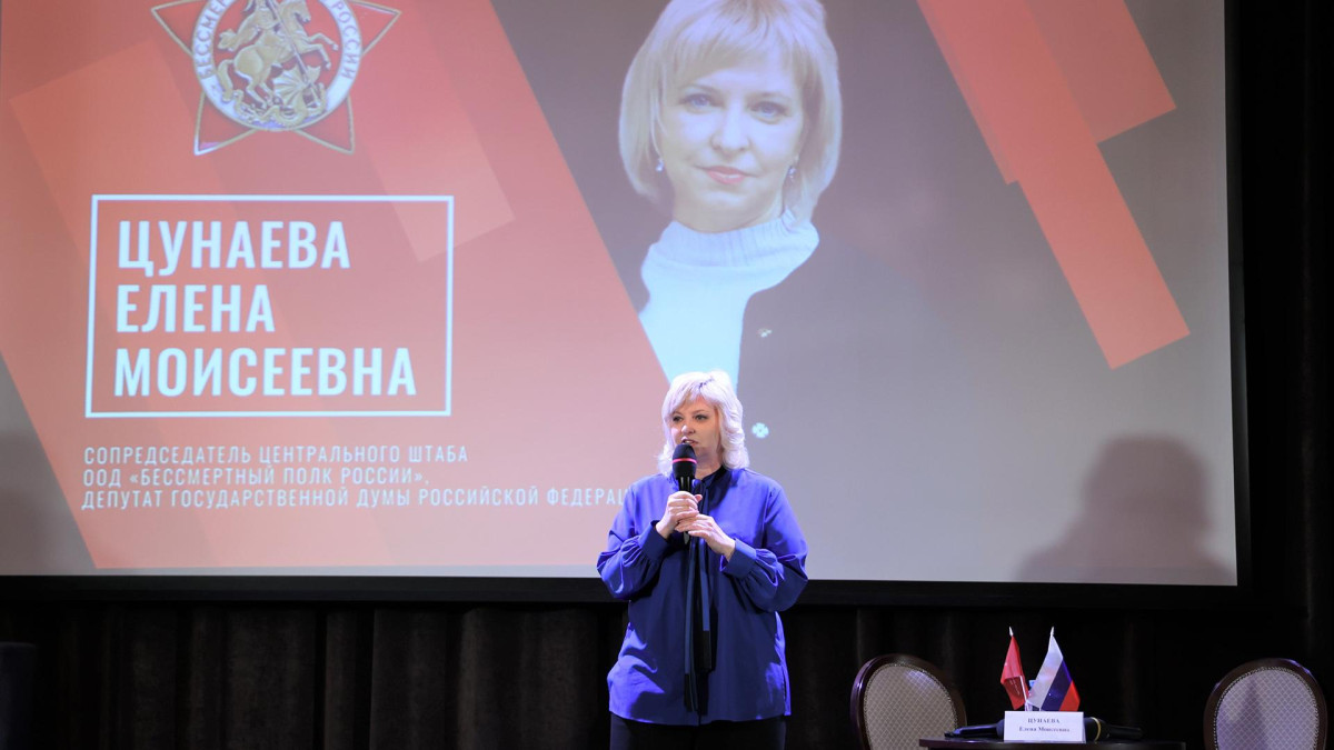 В докладе депутата Государственной Думы Российской Федерации, Сопредседателя Центрального штаба Бессмертного полка России Елены Цунаевой красной нитью проходила мысль о том, что нельзя патриотическое воспитание пускать на самотек, поскольку это приводит к тому, что молодежи начинают навязывать ложные, несовместимые с традиционными общероссийскими ценностями взгляды и идеалы: «Наша с вами работа поднята на уровень национальной безопасности. Настало то время, когда мы мы должны быть вооружены самыми современными приемами информационной борьбы. Потому что нас хотят заставить покаяться в том, что мы не совершали, не гнушаясь прямых фальсификаций и полного отрицания всего, что связано с подвигом нашего народа, с нашей Победой и надо уметь этому противостоять».