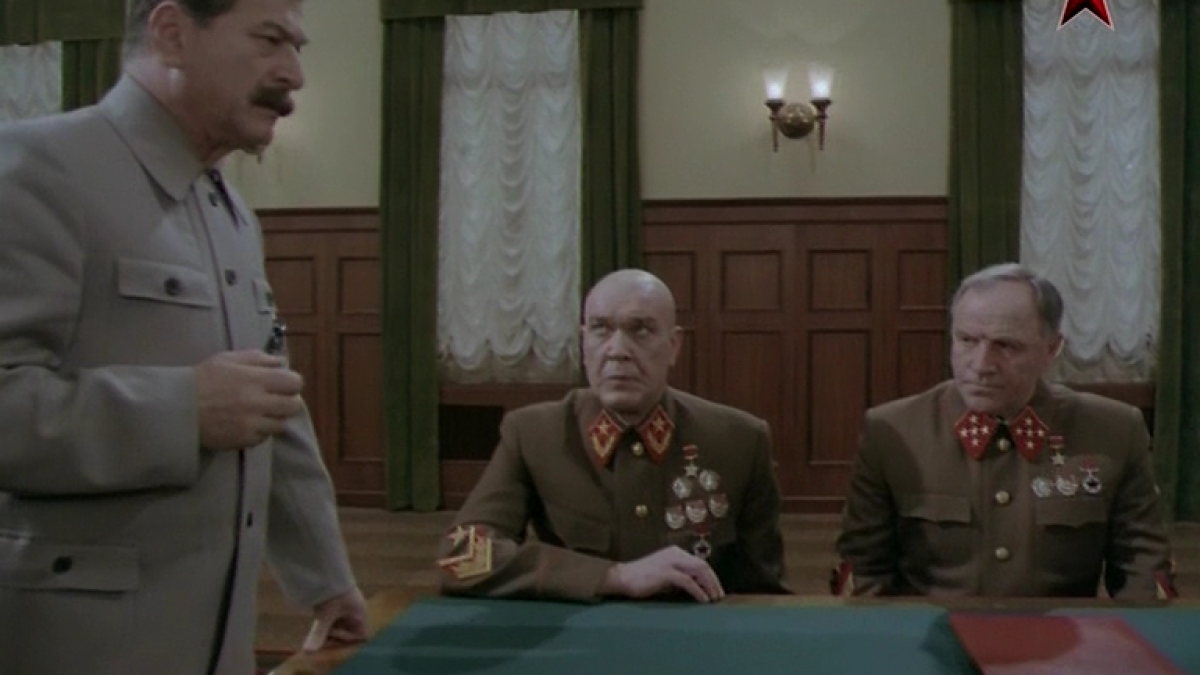 После грандиозной кинофрески «Живые и мертвые», отечественный кинематограф к теме начала Великой Отечественной войны возвращался трижды – в скромном шедевре Алексея Симонова «Отряд» (1984), в батальном кинополотне Юрия Озерова «Битва за Москву» (1985), в котором пиротехники различных строений взорвали больше, чем во всех остальных военных фильмах вместе взятых, и в экранизации популярного романа Ивана Стаднюка «Война», выполненной режиссерами Григорием Коханом, прославившимся сериалом «Рожденная революцией», и Тимофеем Левчуком, дебютировавшим в кино еще в далеком 1949 году военной драмой «Заря над Карпатами» и ставшего известным благодаря «партизанской» эпопее «Дума о Ковпаке». Увы, на излете советской эпохи возможностей снять шедевр у студии «имени Олександра Довженка» практически не было, и даже Михаил Ульянов, Виталий Розтальный и Николай Засухин, сыгравшие в «Битве за Москву», соответственно, Жукова, Тимошенко и Молотова, в тех же ролях и тех же костюмах плавно перешли в «Войну на западном направлении», и только Николай Волков, снявшийся у Озерова в роли командующего Киевским особым военным округом генерала Кирпоноса, у Кохана и Левчука был «повышен» до начальника Генерального штаба маршала Шапошникова. С консультантами на фильме, похоже, творилась беда, и потому к генералу Жукову обращались «товарищ маршал», бойцы уже летом 1941 года отбивались от немецких танков с помощью противотанковых ружей, поступивших в войска, дай Бог, в ноябре, а у наркома НКВД Лаврентия Берии петлицы нашиты вверх ногами, что вряд ли было в действительности. Перебор вышел и с начальником Политуправления Красной Армии Львом Мехлисом, которому в фильме отдано непропорциональное его боевым заслугам количество времени, и с арестованными генералами, которых перед войной маринуют всех вместе в одном каземате в кителях со споротыми погонами, и с тем же Берией, который, конечно, «палач» и все такое, но обмануть Сталина - убить в застенках генерала Павлова и сказать, что у того не выдержало сердце – это все-таки уже слишком. Да и глубокомысленные «перестроечные» утверждения, что в годы «ежовщины» и «бериевщины» было репрессировано 40 тысяч военных – это, конечно, далеко от правды и не учитывает ни осужденных за уголовные преступления, ни списанных по болезни и по возрасту, ни восстановленных впоследствии в армии в годы все той же «бериевщины».