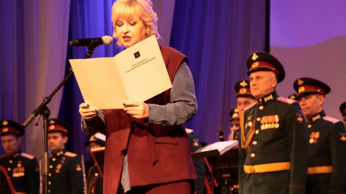К гостям и участникам торжественного закрытия Акции обратилась Сопредседатель Центрального штаба Бессмертного полка России, ответственный секретарь Поискового движения России Елена Цунаева и прочитала слова приветствия от Президента Российской Федерации Владимира Путина.