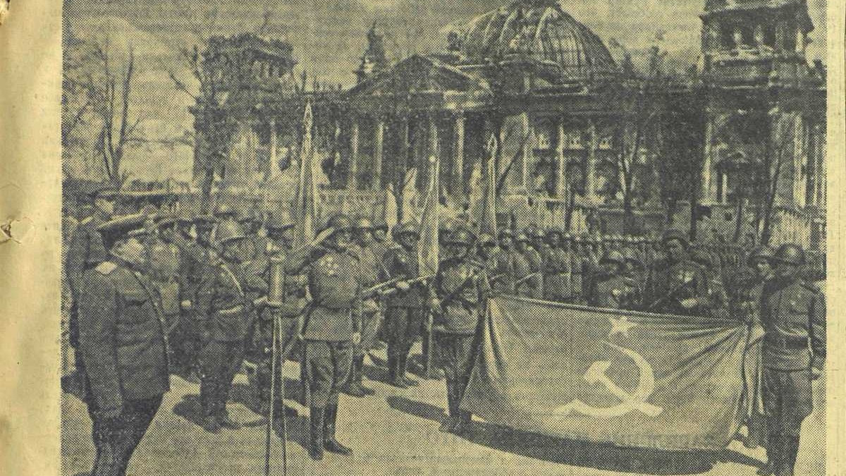 76 лет назад, 20 мая 1945 года, в связи с передачей районов, прилегающих к берлинскому рейхстагу в зону ответственности оккупационных войск Великобритании, как сообщала газета «Красная Звезда», «было принято решение перенести Знамя Победы в Москву как исторический документ нашей военной славы. 20 мая 1945 года у рейхстага выстроились части Красной Армии. На улице напряженная тишина. Воздух оглашает команда: «Под знамя нашей победы смирно!» Замерли ряды воинов, играет Гимн Советского Союза. Группа советских офицеров выносит из подъезда рейхстага развернутое полотнище. Знамя Победы было пронесено мимо бойцов, дравшихся за Берлин и вручено коменданту Берлина генерал-полковнику Берзарину».