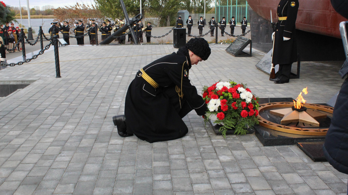 В своем выступлении командующий Каспийской флотилией контр-адмирал Александр Пешков подчеркнул особую важность решений царя-реформатора Пётр I, в 1722 году подписавшего Указ о постройке в Астрахани военного порта: «Наш долг перед прошлым и будущим – сохранить то, что было завоёвано нашими героическими предками, обеспечить мир, стабильность и процветание великой России».