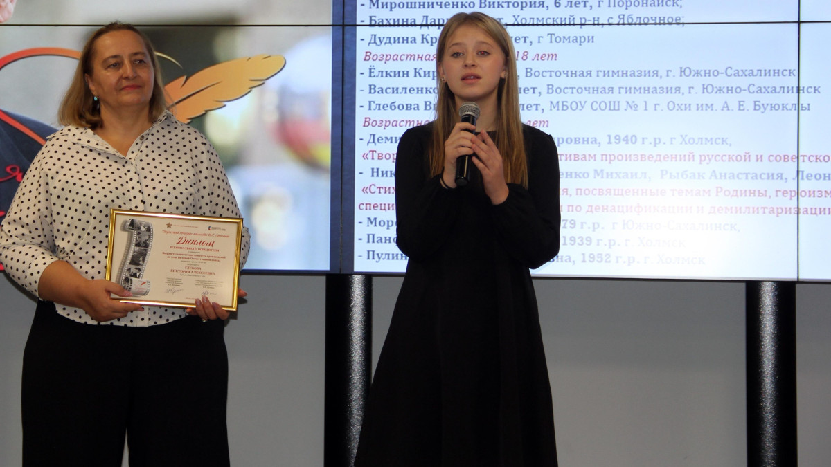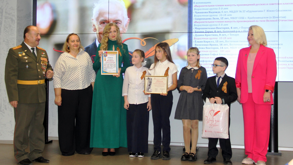 Все победители были награждены Дипломами и ценными подарками. Также решением регионального штаба были награждены два педагога: Инна Сорокина (Восточная гимназия, г.Южно-Сахалинск) и Наталья Мозалевская (СОШ с. Быков Долинского района). Завершилось мероприятие экскурсией по музейно-мемориальному комплексу «Победа» - одному из лучших музеев Сибири и Дальнего Востока.