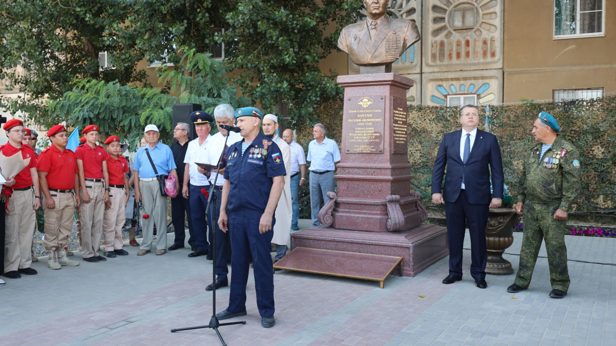 С приветственным словом в адрес десантников выступил вице-Губернатор, Председатель Правительства Астраханской области Д.А. Афанасьев, который совместно с временно исполняющим обязанности военного комиссара города Астрахани, подполковником Калмыковым Я.А. вручили Ордена Мужества и медали «За отвагу» родным солдат, павших при исполнении боевых обязанностей во время спецоперации.