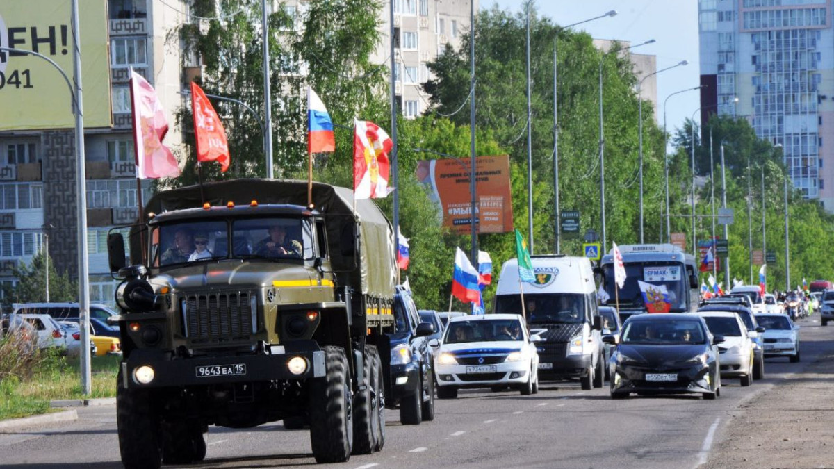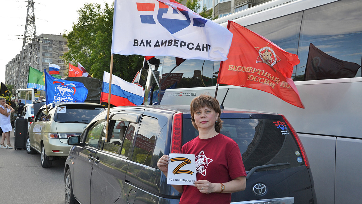 В городе Ангарске Иркутской области прошла акция «Россия своих не бросает» – автомотопробег в поддержку президента РФ Владимира Путина и российских военнослужащих, которые участвуют в спецоперации на Украине.