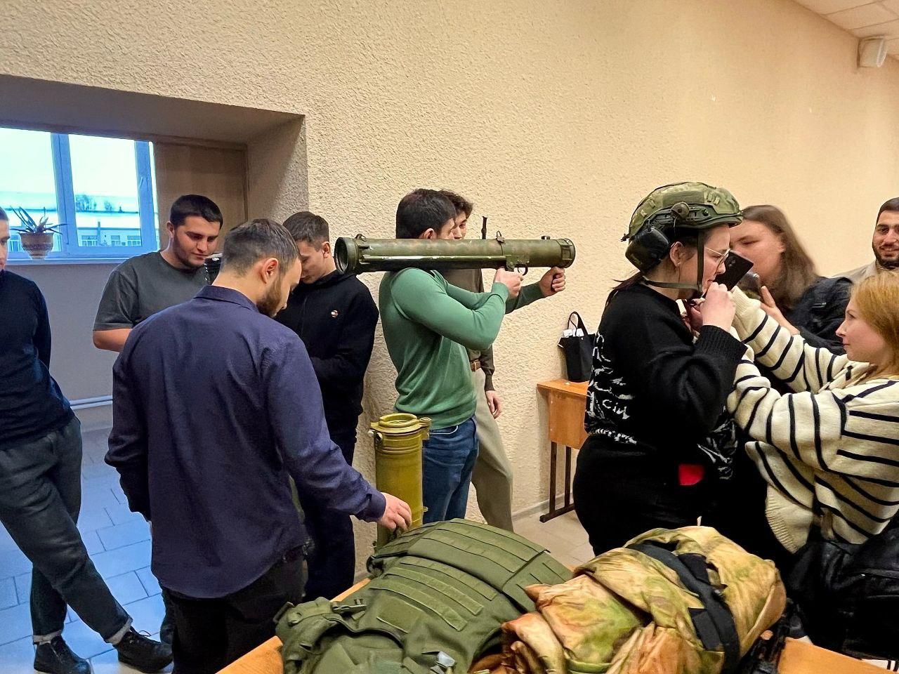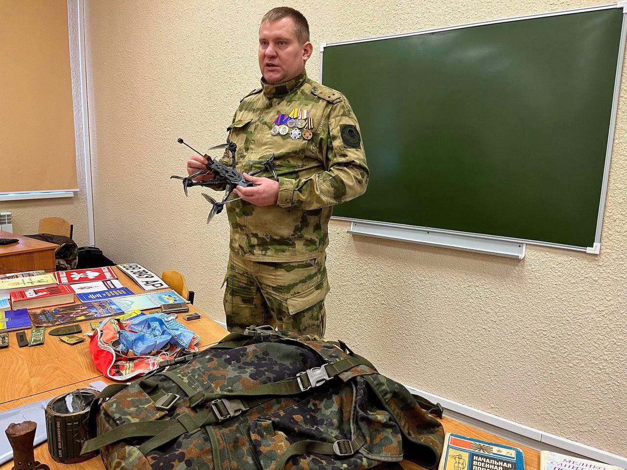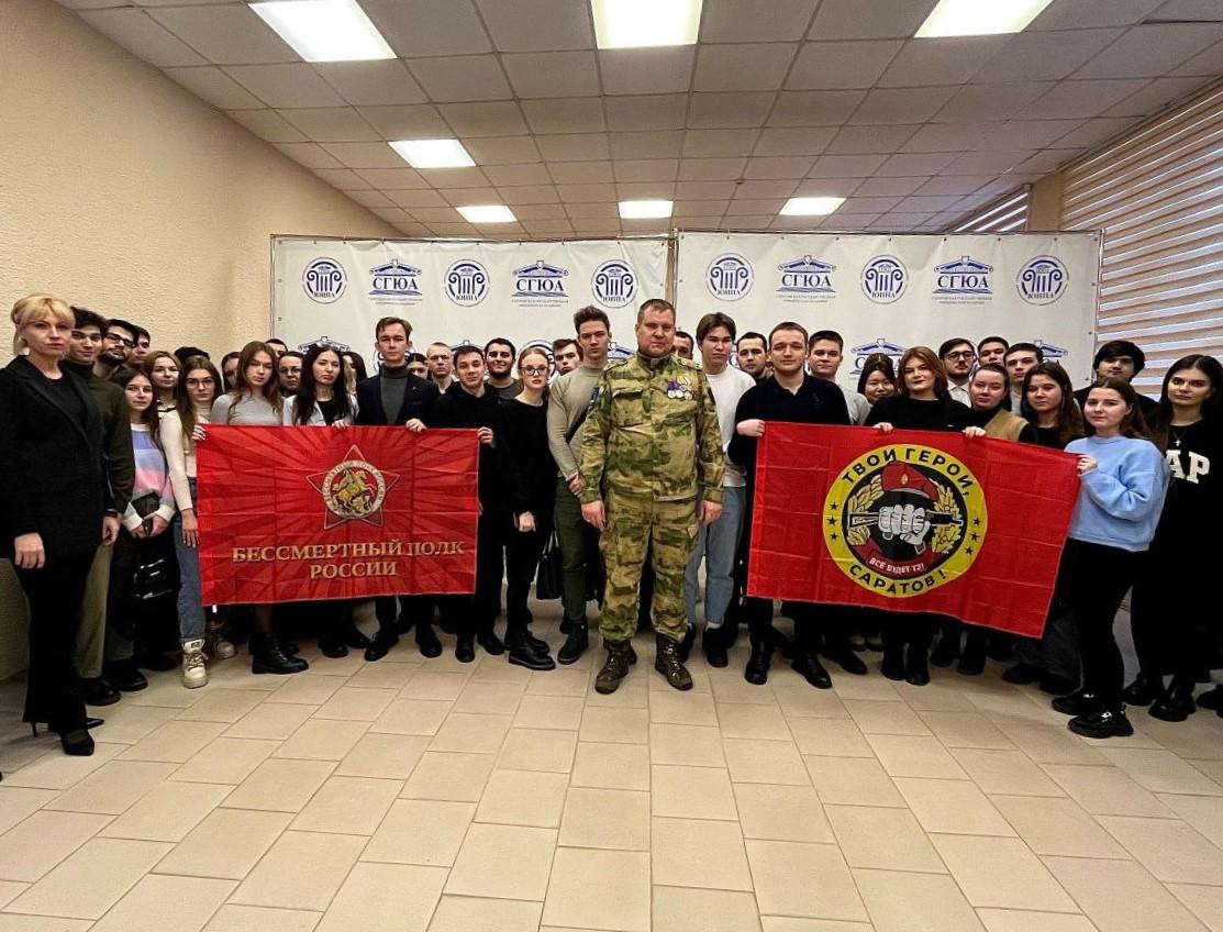 «Уроки мужества» в Саратовском юридическом институте правосудия и адвокатуры и социально-реабилитационном центре для несовершеннолетних «Возвращение» провели руководитель исполкома Бессмертного полка России в Саратовской области, участник специальной военной операции Андрей Бердников и член организации «Твои герои, Саратов» Дмитрий Молоков. Особый интерес у ребят вызвал рассказ о боевых столкновениях с украинскими фашистами. Также гости поведали о буднях наших солдат на передовой, жизни в военных полевых условиях, о том, как наши бойцы преодолевают трудности, сохраняя человеческое достоинство в сложных ситуациях. На конкретных примерах ребята увидели, что настоящие герои существуют и в наши дни, что мужество, храбрость, любовь к Родине - это не просто слова, это качества настоящего человека. Воспитанники попросили передать участникам боевых действий свои письма с благодарностью за возможность жить и учиться под мирным небом, за защиту нашей Родины. Ребята пожелали солдатам скорейшего возвращения домой с победой над неонацистами и поздравили с наступающим Новым годом. Гости отметили, что такие приветы с Родины очень важны и ценны для солдат. Бойцы размещают письма в блиндажах на видных местах и неоднократно перечитывают их.Также воспитанникам представилась возможность ознакомиться с экспонатами передвижной выставки предметов из зоны боевых действий.
