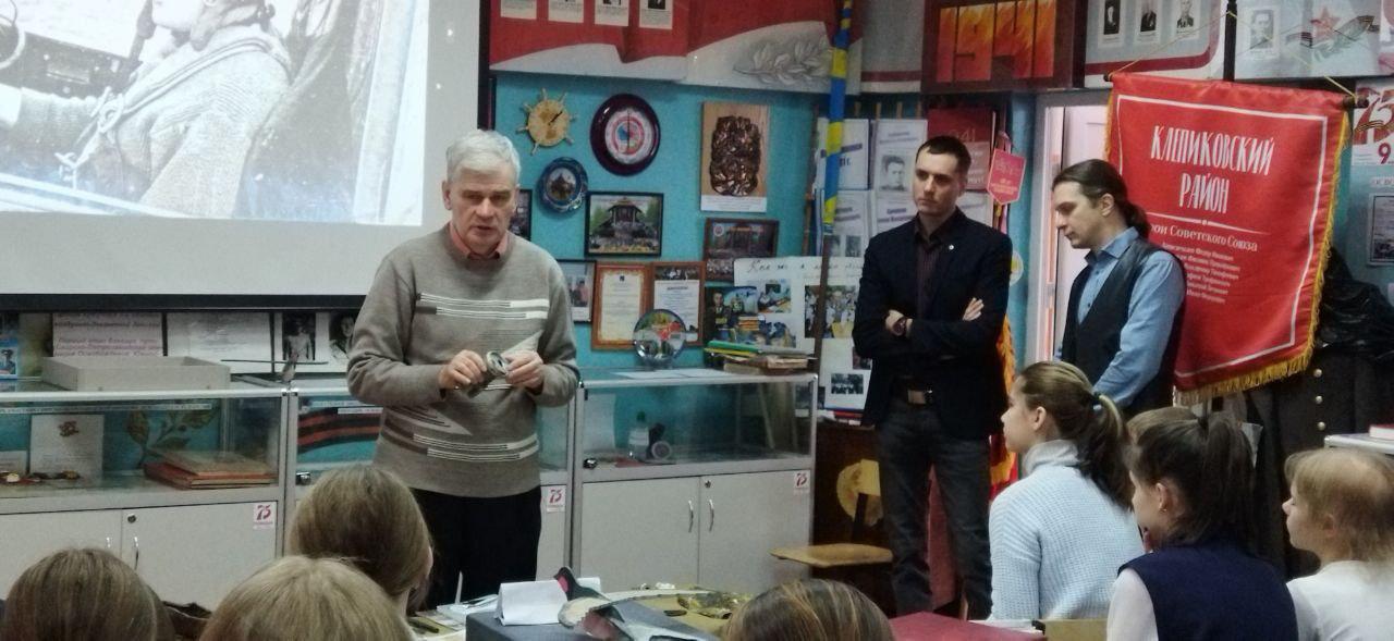 В средней школе Клепиковского района Рязанской области активисты регионального отделения Бессмертного полка России во главе с руководителем штаба Алексеем Царевым пообщались с ребятами на тему увековечения памяти погибших при защите Отечества и передали в дар школьному музею фрагменты самолета, в декабре 1941 года сбитого в этих местах в бою с немецкими истребителями. Но подробности того события до недавнего времени были неизвестны. И только в 2022 году в результате проведения поисковых работ было локализовано место крушения боевой машины, поднят мотор и установлен его заводской номер. И выяснилось, что среди членов экипажа был будущий Герой Советского Союза Платон Федосеевич Клята. Вот так, спустя 82 года с тех далёких событий, ребята и девчата прикоснулись к героическому прошлому своих предков, которые проливали свою кровь за независимость нашей Родины.