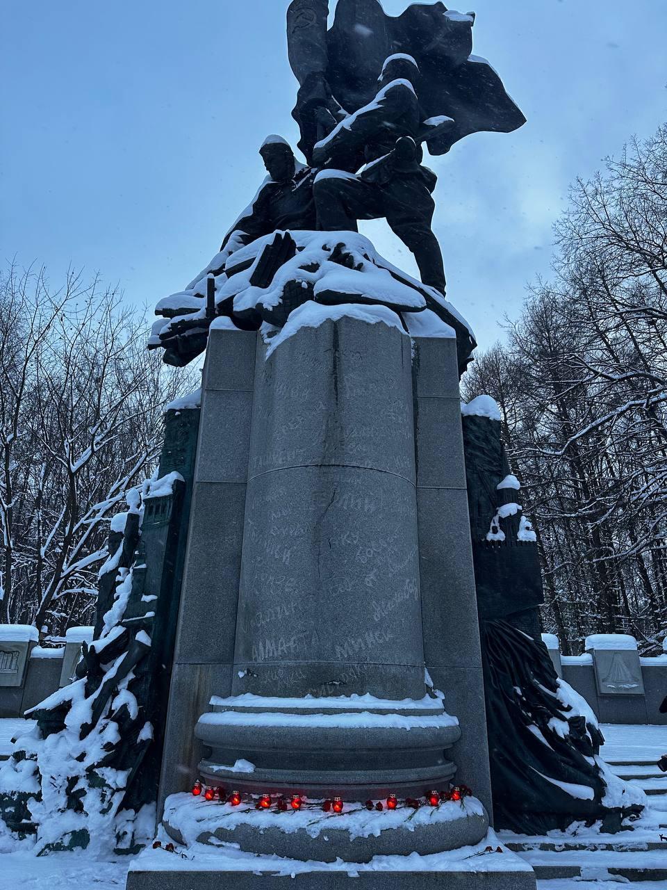 В память о всех героях Отечества сотрудники Исполкома Бессмертного полка России в Парке Победы на Поклонной горе возложили цветы к памятнику Защитникам земли Российской и Мемориалу борцов с фашизмом, и зажгли лампады в честь героев.