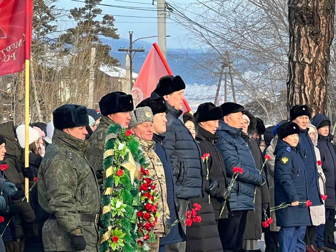 В столице Республики Бурятия Улан-Удэ на территории Мемориала, посвященного воинам, погибшим в госпиталях, активисты регионального отделения Бессмертного полка России приняли участие в возложении цветов к подножию мемориала. Напомним, что 8 декабря 2023 года Президент Российской Федерации Владимир Путин вручил Золотую Звезду Героя России Дашибалу Мункожаргалову. Это уже четырнадцатый Герой России из Бурятии за время проведения специальной военной операции.
