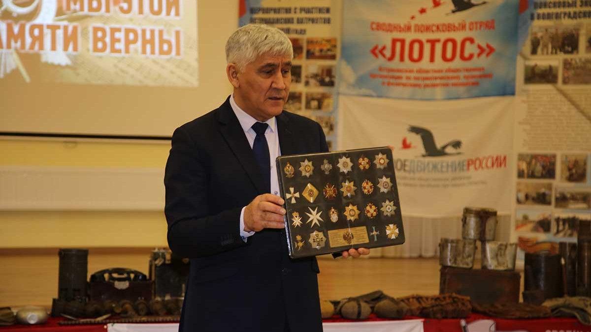 Уроки мужества в Астраханской области из-за того, что в региональном отделении Бессмертного полка России большое количество поисковиков, сопровождаются по традиции выставками с артефактами из поисковых экспедиций. В ходе такого патриотического мероприятия «Мы помним подвиг солдата» представители регионального отделения Движения рассказали о событиях Великой Отечественной войны на Астраханском направлении, а также о причинно-следственных связях идущей специальной военной операции на территории Украины и о работе астраханских общественников в области патриотического воспитания и увековечения памяти погибших при защите Отечества.