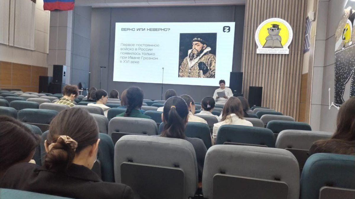 Сегодня преемственность поколений имеет особое значение для сохранения исторической правды, передаваемые от предков знания формируют образ россиянина-защитника Отечества. Елена Ручьева, руководитель штаба регионального отделения «Бессмертного полка России», рассказала лицеистам о том, как менялось отношение общества к военной службе на протяжении разных исторических эпох, а также поделилась интересными фактами о героизме и самоотверженности наших защитников.