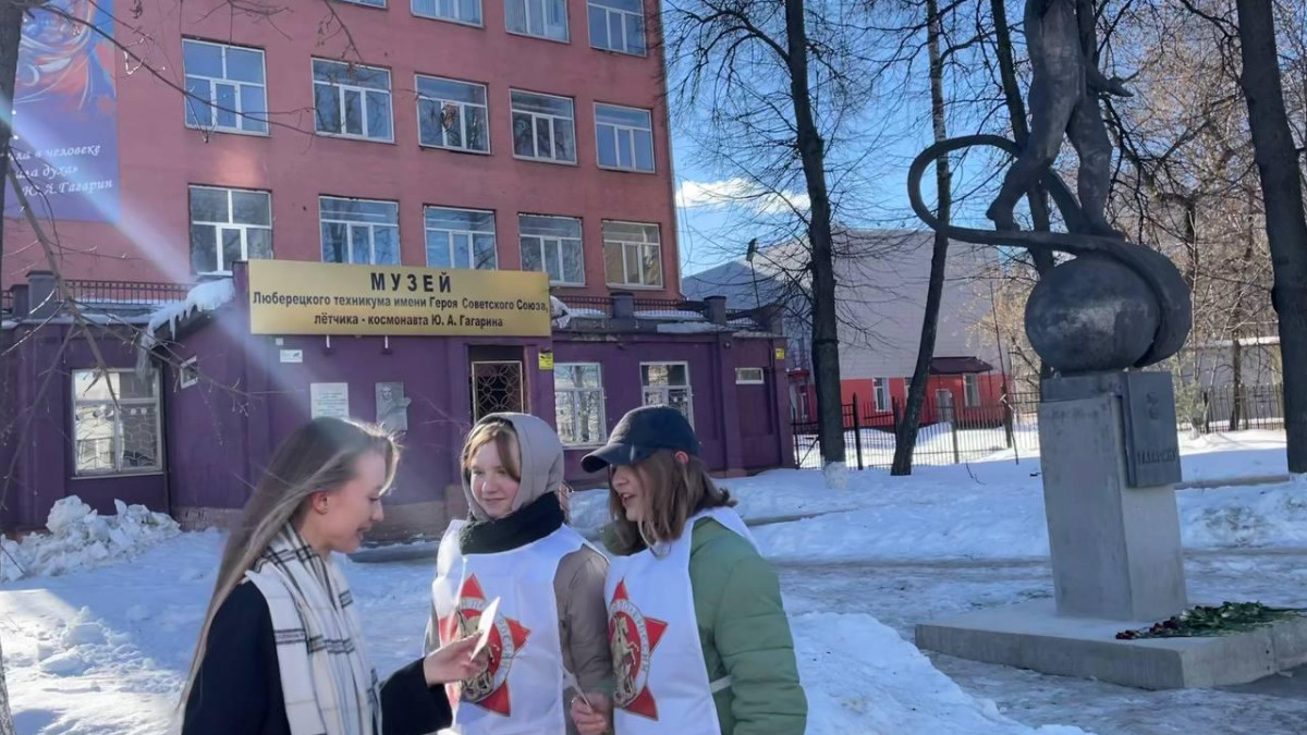 Юные добровольцы из ГБОУ 1793 вручали закладки для книг с описанием жизни Юрия Гагарина и важными датами - историческими событиями, произошедшими в Московской области в разные периоды отечественной истории. Маршрут проходил возле знаковых мест - памятного мурала Гагарину, двух корпусов училища, которое носит имя Героя Советского Союза, у Вечного огня. Ребята вместе с руководителем подмосковного исполкома Бессмертного полка России, учредителем АНО «Мой выбор» Марией Анисимовой возложили цветы к памятнику Главному космонавту Земли.