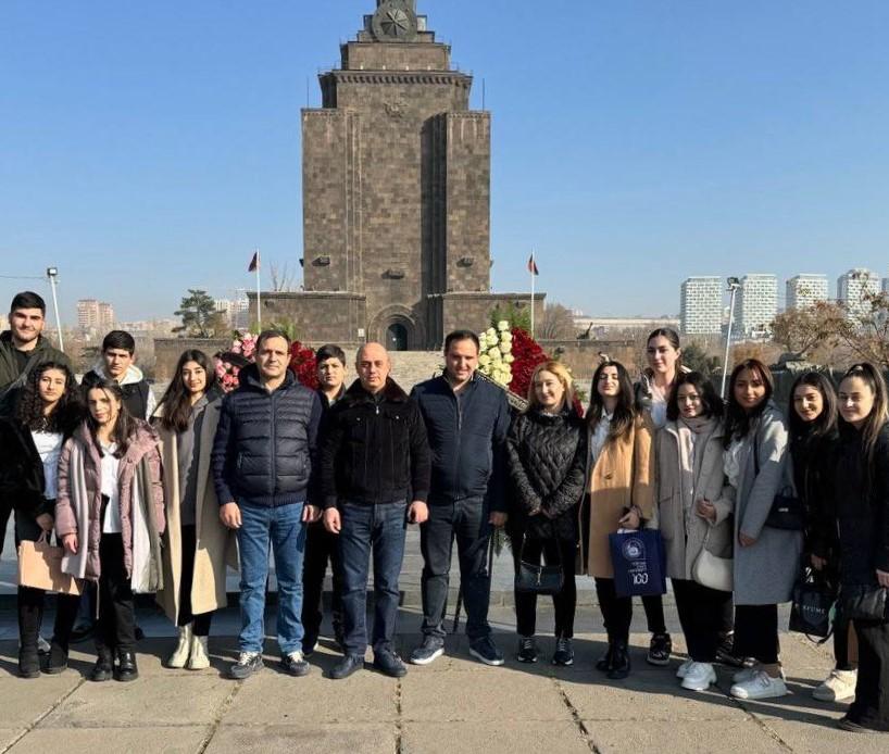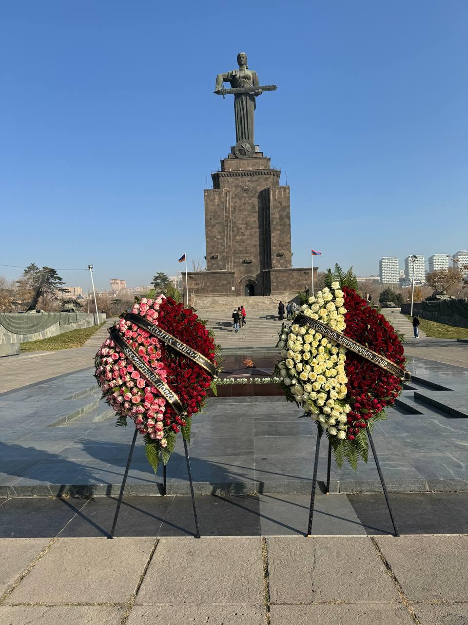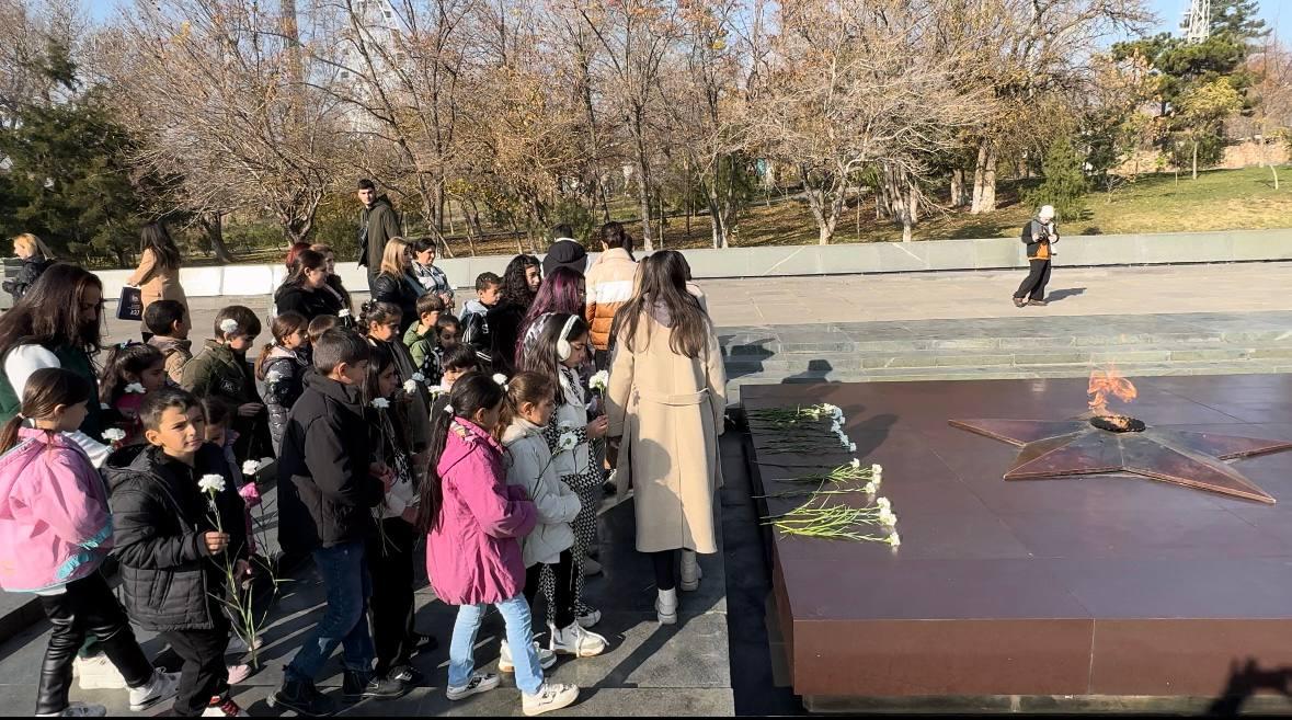 В столице Республики Армения Ереване активисты Бессмертного полка и учащиеся школ города возложили цветы к памятнику Неизвестному солдату и Вечному огню в парке Победы.
