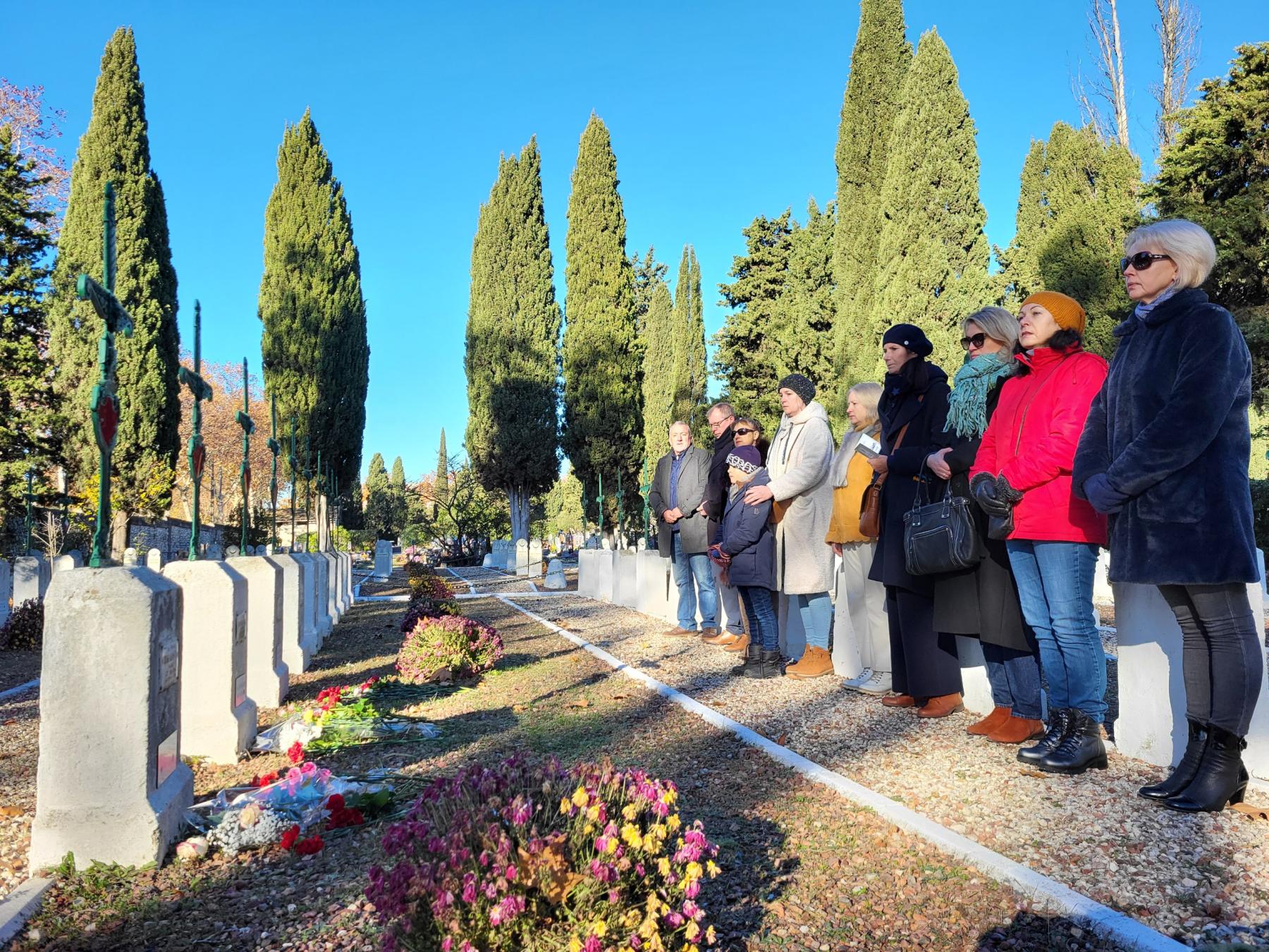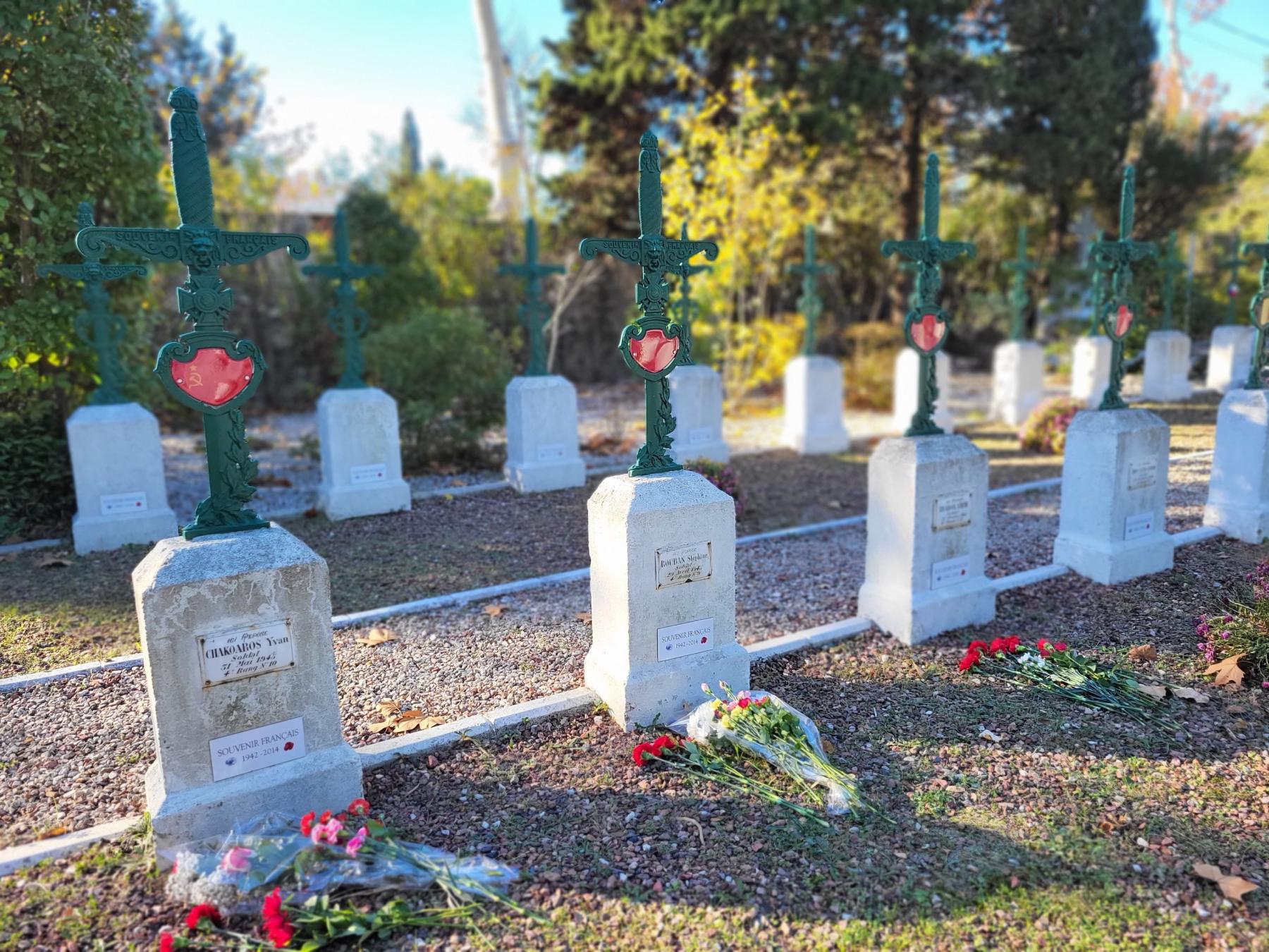 А во Франции наши соотечественники пришли поклониться подвигу советских солдат, погибших на французской земле и прочитали стихи Михаила Исаковского «Здесь похоронен красноармеец», написанные в далеком 1942 году: