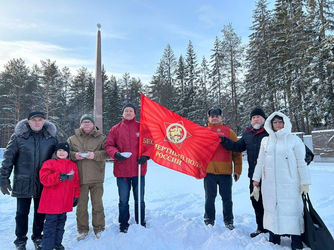 Участники митинга возложили цветы к Вечному огню. Самым юным участником возложения стал активист Движения Ярослав Ежов. «Воспитывать любовь к Родине и почтение к подвигу наших дедов и прадедов, заплативших большую цену за Победу над мировым злом - фашизмом, необходимо с детства, как можно раньше, чтобы наша страна оставалась суверенной и могучей благодаря передаче от поколения к поколению исторической памяти народа», - уверен папа Ярослава, руководитель исполкома Свердловского отделения Бессмертного полка России Павел Ежов.