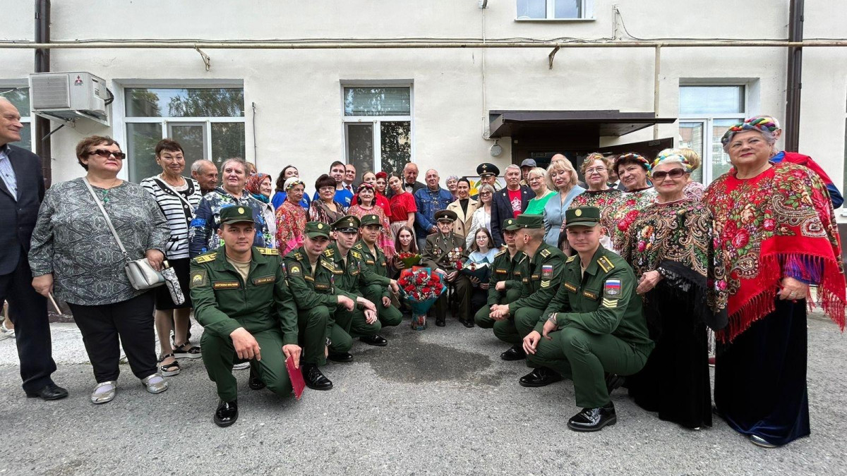 Поздравить юбиляра собрались депутат Тюменской городской Думы Наталья Проскурякова, представители Управы Калининского района, военный оркестр ТВВИКУ им. Маршала А.И.Прошлякова, команда Тюменского областного и Тюменского городского отделений ООД «Бессмертный полк России», хор «Раздолье» Калининского совета ветеранов, вокальный дуэт «Два Дубки», друзья, родственники и соседи ветерана.
