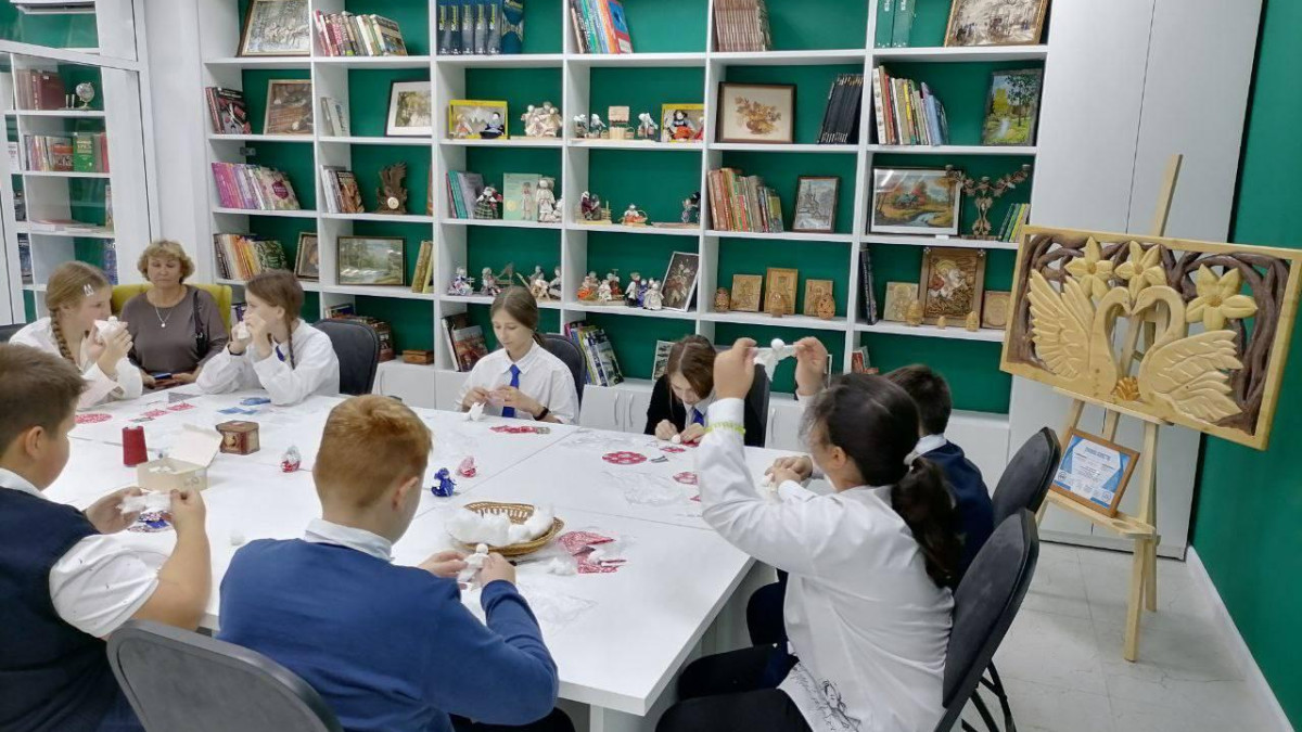 Одним из направлений сохранения культурного наследия является организация кружка по резьбе по дереву. Резчик по дереву - хобби активиста Бессмертного полка России Владимира Гаскова. Сегодня некоторые его работы, в том числе иконы и фрески, были представлены гостям в обновленной библиотеке. Заместитель Атамана Дмитровского казачества, друг регионального отделения гражданско-патриотического движения Анатолий Марчук долго не хотел расставаться с деревянным троном, выполненным в духе традиционного древнерусского ремесла.