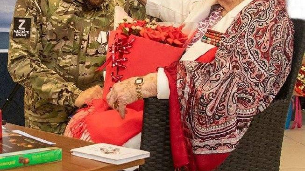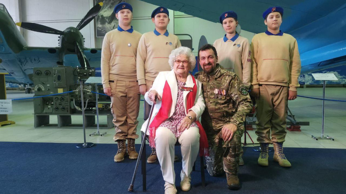 От лица Бессмертного полка России в Московской области легендарную женщину поздравил стихами и песнями победитель первого творческого конкурса памяти Василия Ланового "Пробуждая сердца", член регионального штаба Движения, а ныне - артист фронтовой агитбригады в зоне СВО - Олег Непряхин.